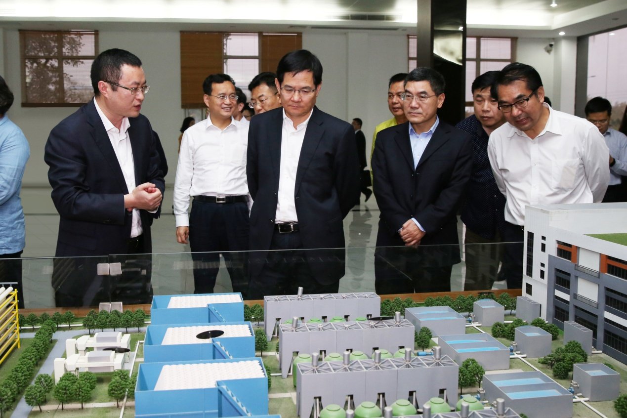 徐少華一行參觀“零排放”金屬表面處理中心污水處理模型,聽取項目相關(guān)介紹
