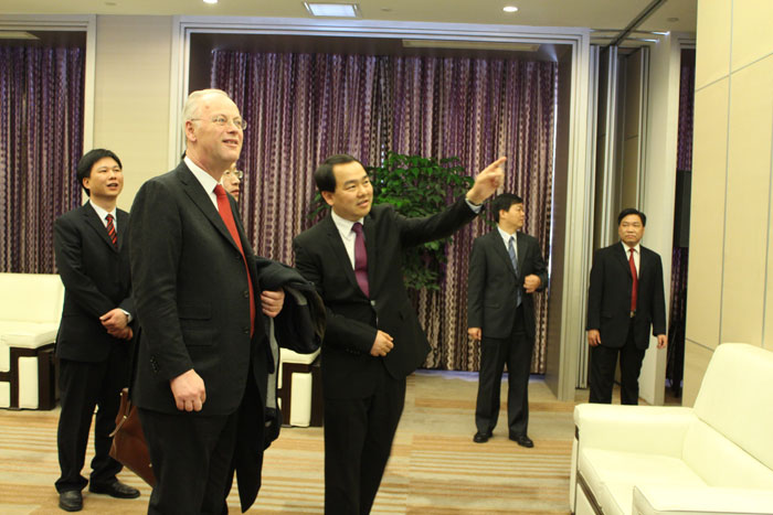 2月24日,中聯(lián)部副部長李進軍和德國社會民主黨前主席魯?shù)婪颉ど碃柶?/A>先生一行蒞臨揭陽金屬企業(yè)聯(lián)合會,揭陽市市長陳東、揭陽市金屬企業(yè)聯(lián)合會會長吳克東陪同參觀。