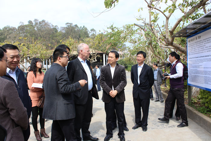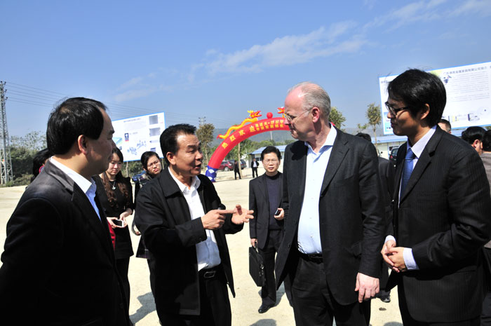 考察團(tuán)一行首先到達(dá)中國(guó)南方(揭陽(yáng))金屬生態(tài)城現(xiàn)場(chǎng),市領(lǐng)導(dǎo)陳東,揭東縣領(lǐng)導(dǎo)林炳華為沙爾平先生介紹了金屬城總體的布局,表示金屬城項(xiàng)目建設(shè)將按照“一個(gè)中心(產(chǎn)業(yè)聚集中心)、兩個(gè)基地(生產(chǎn)加工基地、貿(mào)易物流基地)、三大平臺(tái)(科技創(chuàng)新平臺(tái)、電子商務(wù)平臺(tái)、金融服務(wù)平臺(tái))”的定位進(jìn)行規(guī)劃,建設(shè)中國(guó)“金屬原材料交易中心、金屬產(chǎn)業(yè)研發(fā)設(shè)計(jì)中心、金屬制品制造中心、金屬機(jī)械制造中心、金屬產(chǎn)品銷售中心、金屬行業(yè)人才技工基地、金屬行業(yè)金融中心”七大板塊。隨后,考察團(tuán)來(lái)到中德產(chǎn)業(yè)大學(xué)園區(qū)參觀,考察團(tuán)先后參觀了大學(xué)園區(qū)建設(shè)用地,聽(tīng)取相關(guān)領(lǐng)導(dǎo)介紹大學(xué)園區(qū)規(guī)劃、布局、生活配套設(shè)施和周邊園區(qū)建設(shè)規(guī)劃。