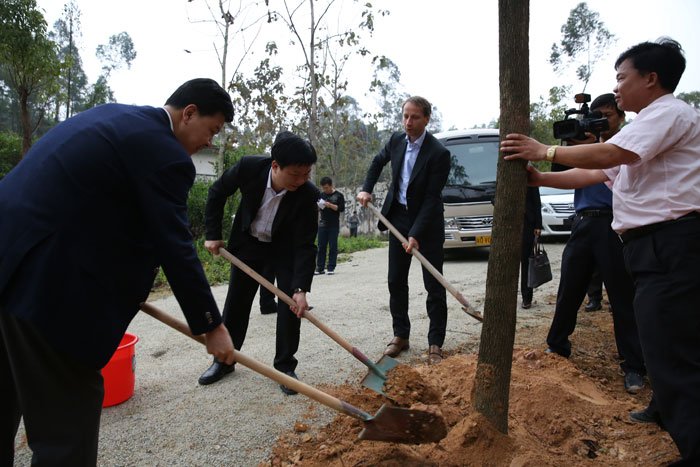 陳定雄副市長、史偉浩、中德金屬集團總裁在中德金屬生態(tài)城萬畝森林公園植樹