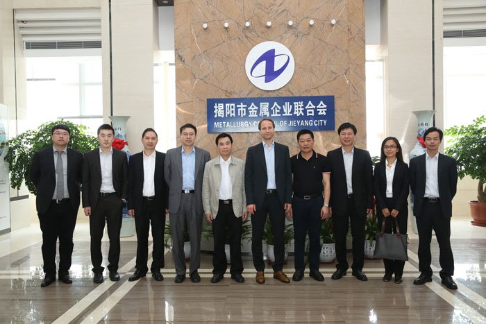 在市金屬企業(yè)聯(lián)合會就項目合作座談后,史偉浩一行與市領(lǐng)導(dǎo)、中德金屬集團相關(guān)領(lǐng)導(dǎo)合影