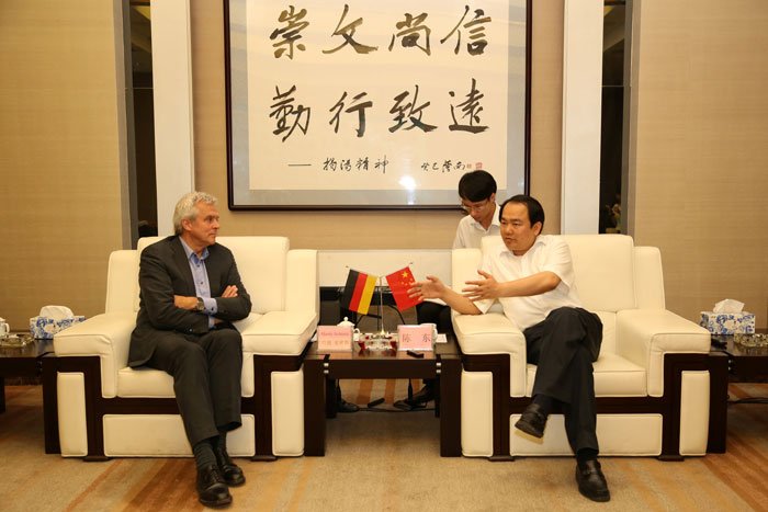 2014年7月24日至25日,德國維斯塔(WISTA)公司總裁哈迪·史密斯(Hardy Schmitz)一行來揭考察中德金屬生態(tài)城項目。揭陽市委副書記、市長陳東會見了哈迪·史密斯一行,雙方就加強(qiáng)園區(qū)管理合作等事宜進(jìn)行深入交流,并達(dá)成一攬子工作細(xì)則。