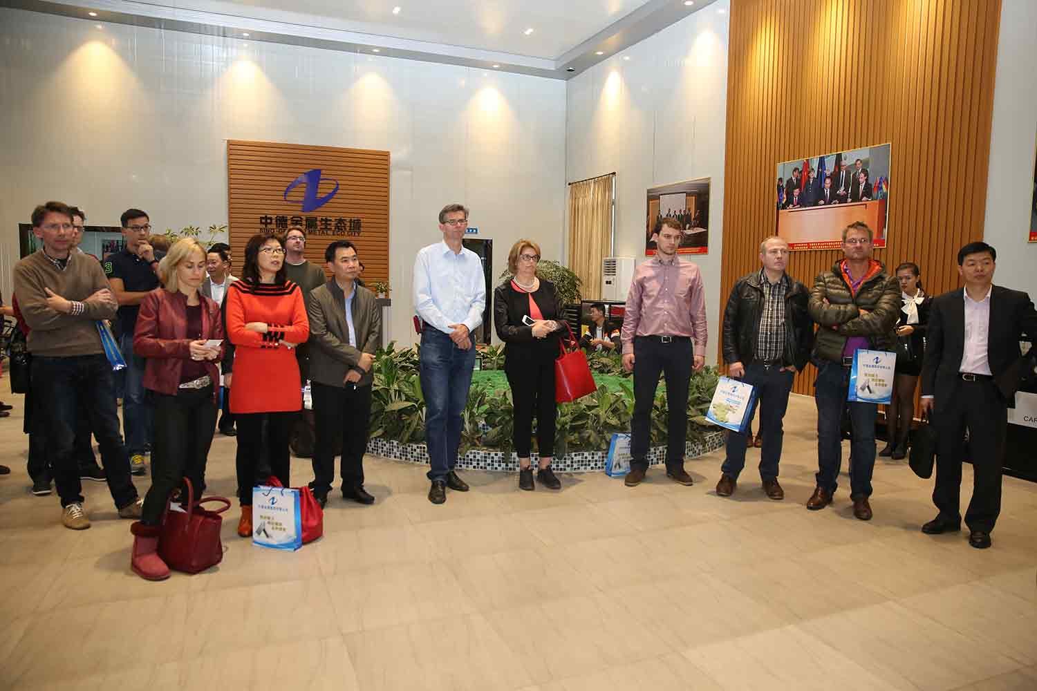 13日下午,16名德國(guó)中小企業(yè)經(jīng)理人一下飛機(jī)就直接來(lái)到中德金屬生態(tài)城進(jìn)行考察交流。通過(guò)實(shí)地考察和聽(tīng)取情況介紹,他們對(duì)中德金屬生態(tài)城的辦園理念等表現(xiàn)出濃厚興趣,紛紛根據(jù)各自所需尋找合作商機(jī)。座談中,在聽(tīng)取德國(guó)艾薩醫(yī)療器械有限公司中國(guó)項(xiàng)目負(fù)責(zé)人的介紹后,埃蕾娜•克魯姆霍爾茨(Elena Krumholz)指名想要繼續(xù)了解和尋求合作。托馬斯•埃伯爾(Thomas Eberl)則對(duì)中德金屬生態(tài)城打造一流的物流系統(tǒng),特別是對(duì)中德外貿(mào)港非常感興趣。致力于幫助中歐企業(yè)進(jìn)行合作的馬偉樂(lè)(Werner Neumeier)詳細(xì)詢(xún)問(wèn)了揭陽(yáng)企業(yè)以及德國(guó)企業(yè)對(duì)中德金屬生態(tài)城的興趣和參與度。他認(rèn)為,中德金屬生態(tài)城為德國(guó)中小企業(yè)搭建了一個(gè)非常好的進(jìn)入平臺(tái),表示將充分考慮參與到這個(gè)項(xiàng)目中。