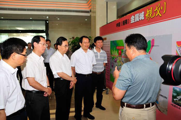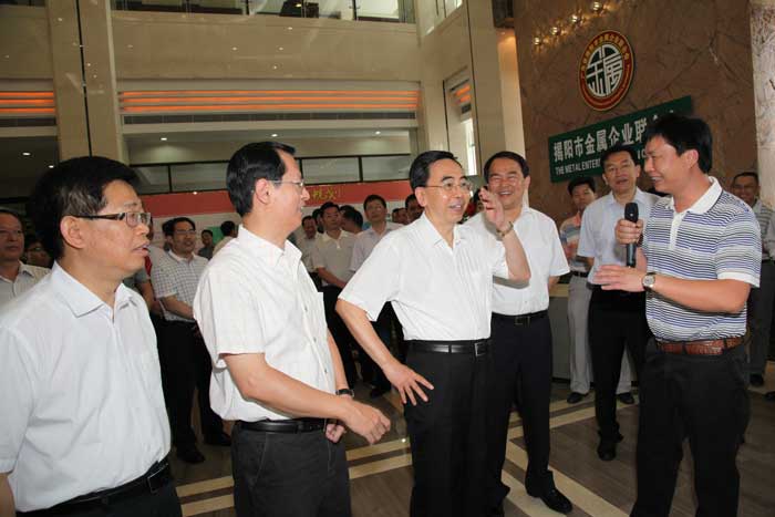 陳東市長簡要的介紹了揭陽市近年來金屬產(chǎn)業(yè)發(fā)展和金屬產(chǎn)業(yè)轉(zhuǎn)型升級的概況,吳克東會長詳細(xì)介紹揭陽金屬城建設(shè)、規(guī)劃、開發(fā)的情況,隨后朱小丹省長觀看了《產(chǎn)業(yè)復(fù)興,輝煌崛起——揭陽金屬產(chǎn)業(yè)20年巡禮》宣傳片,他對揭陽金屬產(chǎn)業(yè)自主創(chuàng)新模式給予充分肯定,希望揭陽繼續(xù)發(fā)揮金屬產(chǎn)業(yè)集群的優(yōu)勢,不斷提升自主創(chuàng)新,打響自主品牌,培養(yǎng)龍頭企業(yè),為加快產(chǎn)業(yè)轉(zhuǎn)型升級,建設(shè)幸福廣東作出新貢獻。