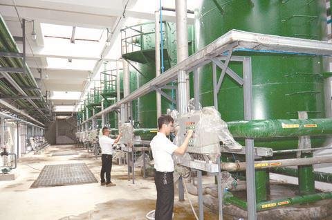 技術人員正在檢查表面處理生態(tài)工業(yè)園廢水處理中心的相關設備。涂英鵬 攝