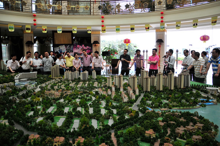 全體股東在沙盤模型前聽取客天下產(chǎn)業(yè)園發(fā)展規(guī)劃介紹