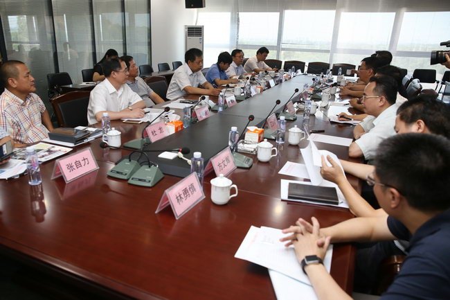 周孟波一行與陳澄民等市領(lǐng)導(dǎo)在空港經(jīng)濟(jì)區(qū)建立倉(cāng)儲(chǔ)物流中心進(jìn)行座談