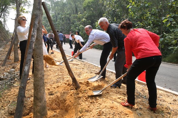 德國(guó)中小企業(yè)經(jīng)理人一行與揭陽(yáng)市領(lǐng)導(dǎo)及企業(yè)家在中德萬(wàn)畝森林公園共植友誼樹(shù)