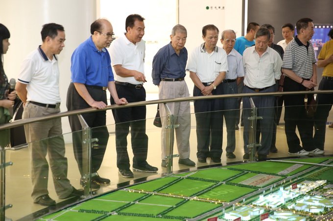 老干部一行觀看項(xiàng)目沙盤,了解園區(qū)規(guī)劃布局及其建設(shè)進(jìn)展