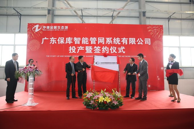 經(jīng)過連續(xù)8個月的緊張籌建,廣東保庫智能管網(wǎng)系統(tǒng)有限公司首條生產(chǎn)線于21日成功投產(chǎn),成為中德金屬生態(tài)城首家投產(chǎn)企業(yè)。揭陽對德合作“百人團”首獲碩果,標(biāo)志著中德金屬生態(tài)城對德(歐)合作邁出了具有實質(zhì)性意義的重要一步。副市長張時義等市領(lǐng)導(dǎo)及中德金屬集團相關(guān)領(lǐng)導(dǎo)參加活動。