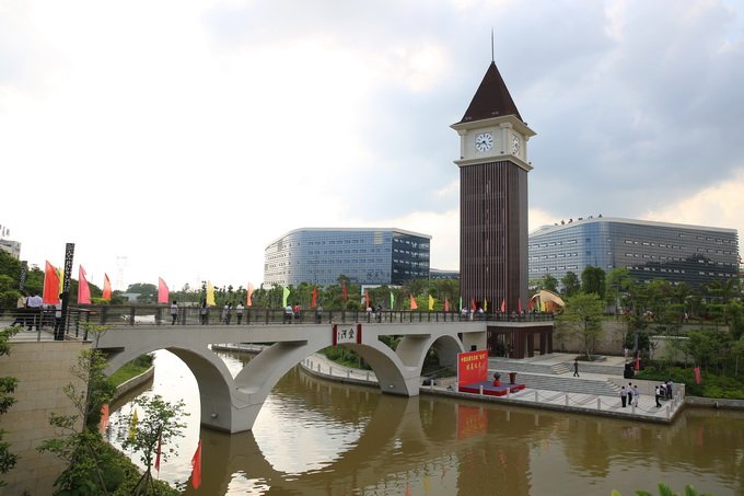 金河在雕塑公園中蜿蜒而過(guò),與獨(dú)具歐式風(fēng)情的鐘塔相得益彰