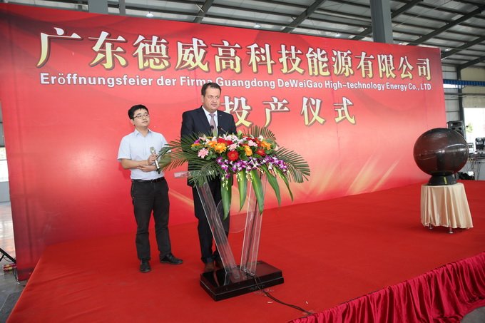 投產(chǎn)儀式上,市政府副秘書長李志堅表示,近年來,揭陽深入貫徹“一帶一路”和“創(chuàng)新驅(qū)動”發(fā)展戰(zhàn)略,不斷深化對德合作,全方位支持中德金屬生態(tài)城建設(shè)。如今,園區(qū)建設(shè)全面加快,入園企業(yè)德威高公司的投產(chǎn)便是一個很好的范例。當(dāng)前,國家高度重視并鼓勵資源的循環(huán)利用和環(huán)境保護(hù),資源高效利用的市場十分廣闊。他希望德威高公司要以投產(chǎn)運(yùn)行為起點(diǎn),瞄準(zhǔn)國際一流,依托中德金屬生態(tài)城這一平臺,深化與德國等發(fā)達(dá)國家的技術(shù)合作,把企業(yè)打造成為資源高效開發(fā)利用的先行者。他還強(qiáng)調(diào),各級有關(guān)部門要進(jìn)一步強(qiáng)化服務(wù)意識,為公司創(chuàng)造寬松的發(fā)展環(huán)境,推動更多中德合作項(xiàng)目落地。